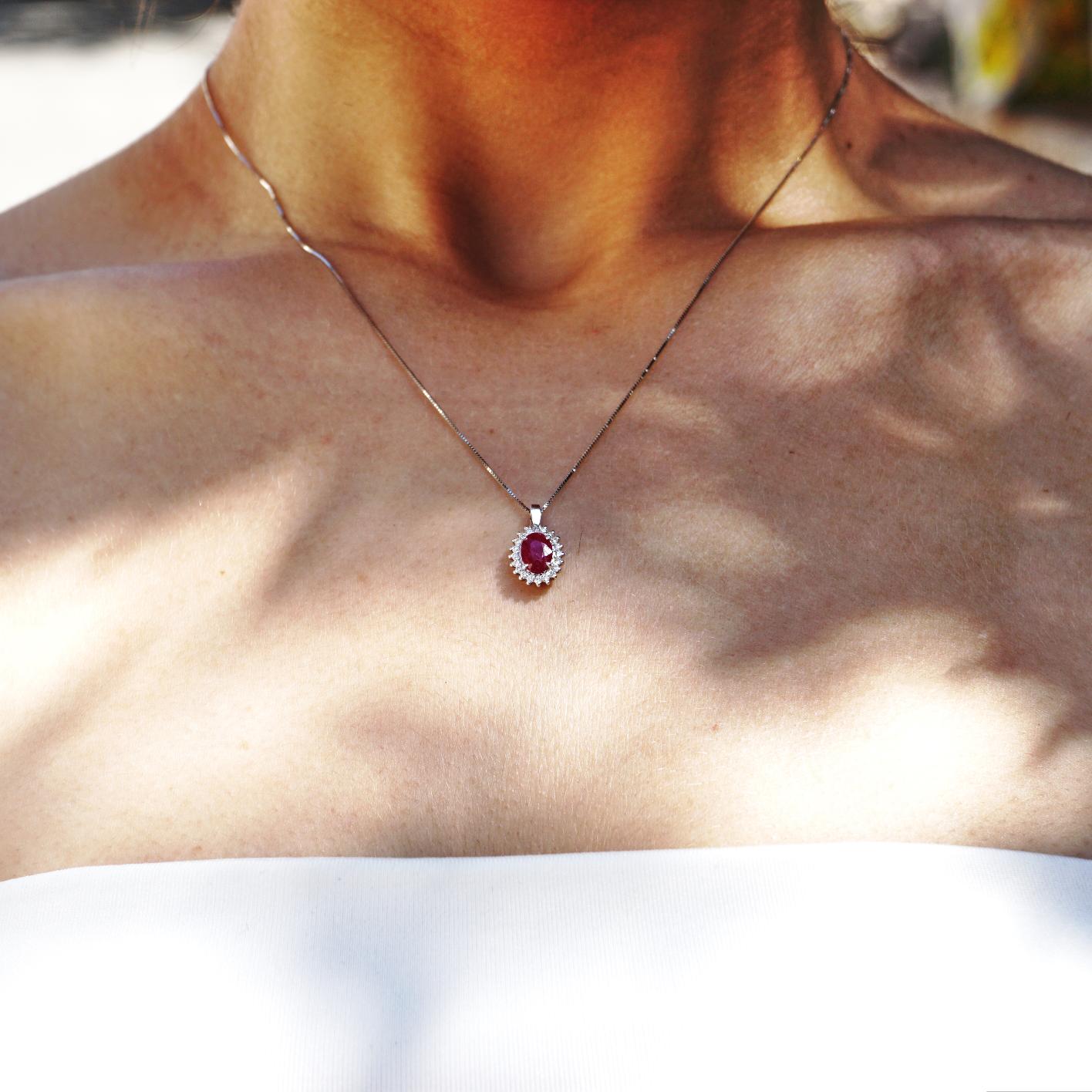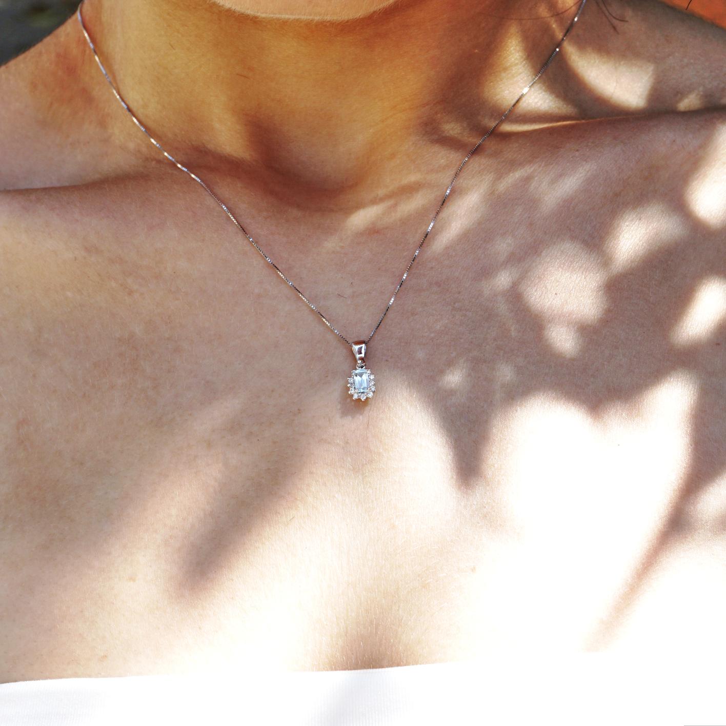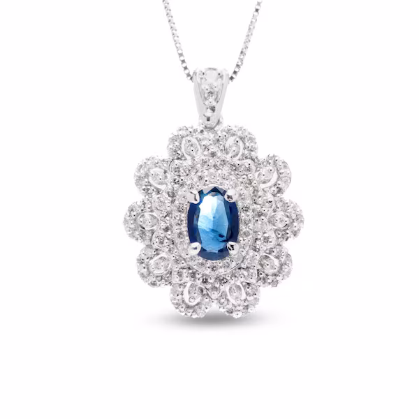 Collana pendente Lady Diana oro 18 kt con diamanti e pietra preziosa